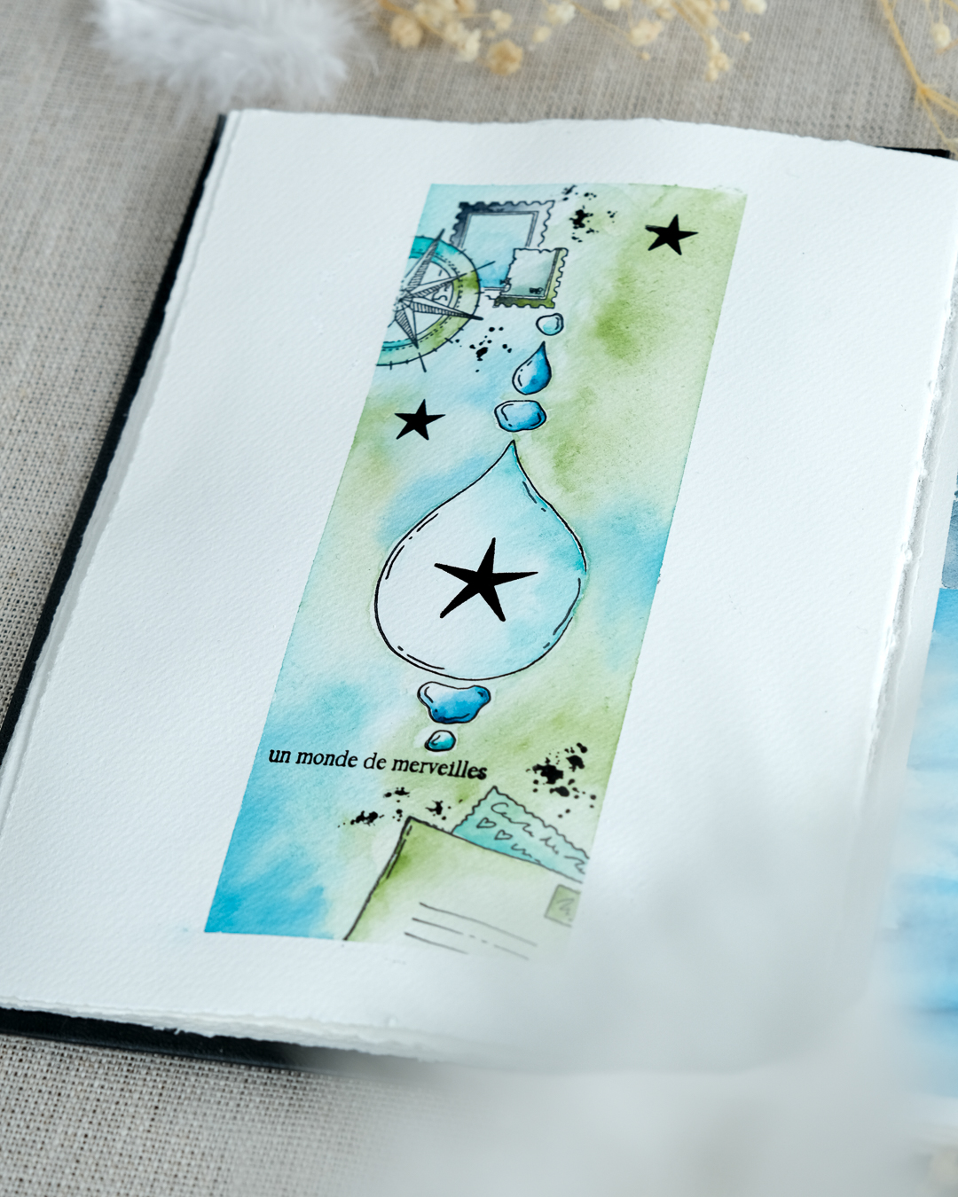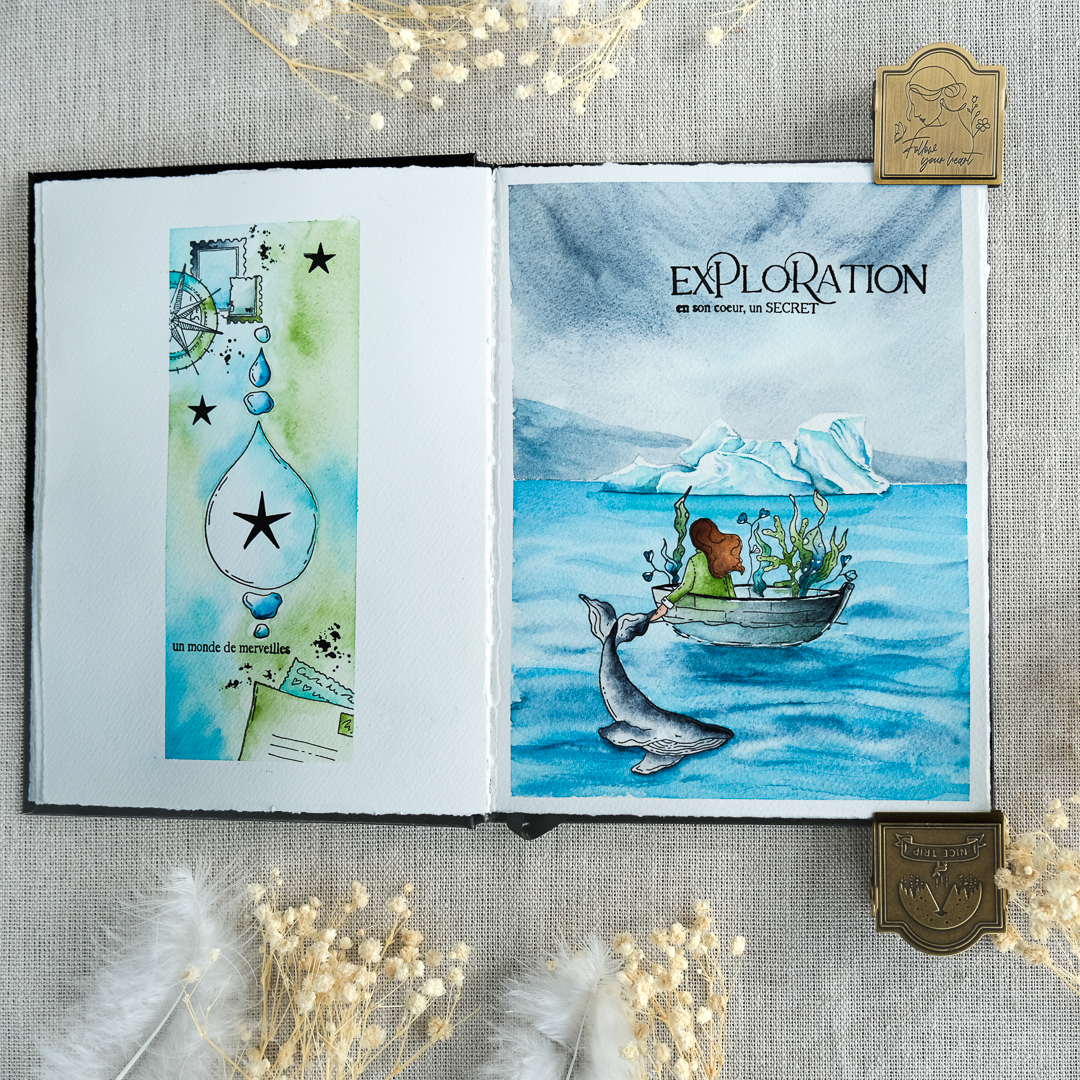 Ce projet scrapbooking et 100% aquarelle est réalisé avec