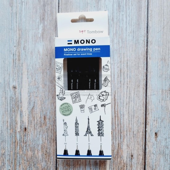 Set de 4 crayon Mono drawing pen avec une pointe metallique, une encre pigmentée résistante à l'eau et une couleur noire intense. Le set contient les épaisseurs de traits suivants :